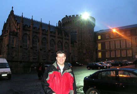Dublin Castle: Sarantakes was in Ireland in 2004 to do research for what became his article "Green Politics, Green and Orange Diplomacy: Lyndon Johnson and Eamon de Valera's Farewell Tour of the United States" in the journal Diplomacy and Statecraft. The article won a writing prize: the Silver Pen Award from the Command & General Staff College. The castle was the headquarters of British administration in Ireland. The Norman Tower in the background dates back to the 13th century. The castle is now home to offices of the Dublin municipal government.