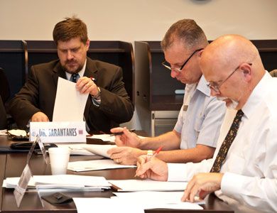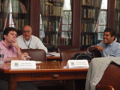Conference: The Strategy & Policy Department at the Naval War College sponsors a conference on how to teach strategy. A number of scholars at other institutions are brought to campus for several sessions that explore the various issues faced in teaching a topic that is part history and part political science. John Maurer, the chairman of the department throws out some issues to discus while Hal Brands of Duke University and Jeremi Suri of the University of Wisconsin listen.