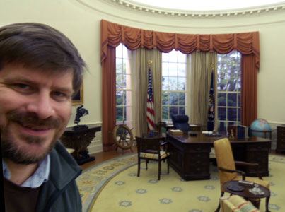 The Room of Rooms: Sarantakes standing in the Oval Office, or in a full-scale reproduction of the room when Gerald R. Ford was President, which is housed at the Gerald R. Ford Presidential Museum. Take your pick.