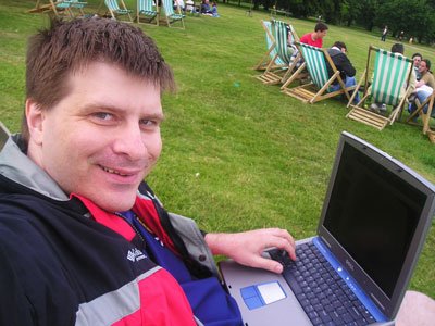 Kensington Park: Writing Allies against the Rising Sun in a lawn chair somewhere in the park during 2004.