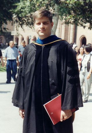 Trojan: Sarantakes at the 1997 graduation exercises at the University of Southern California where he received his Ph.D. in history.